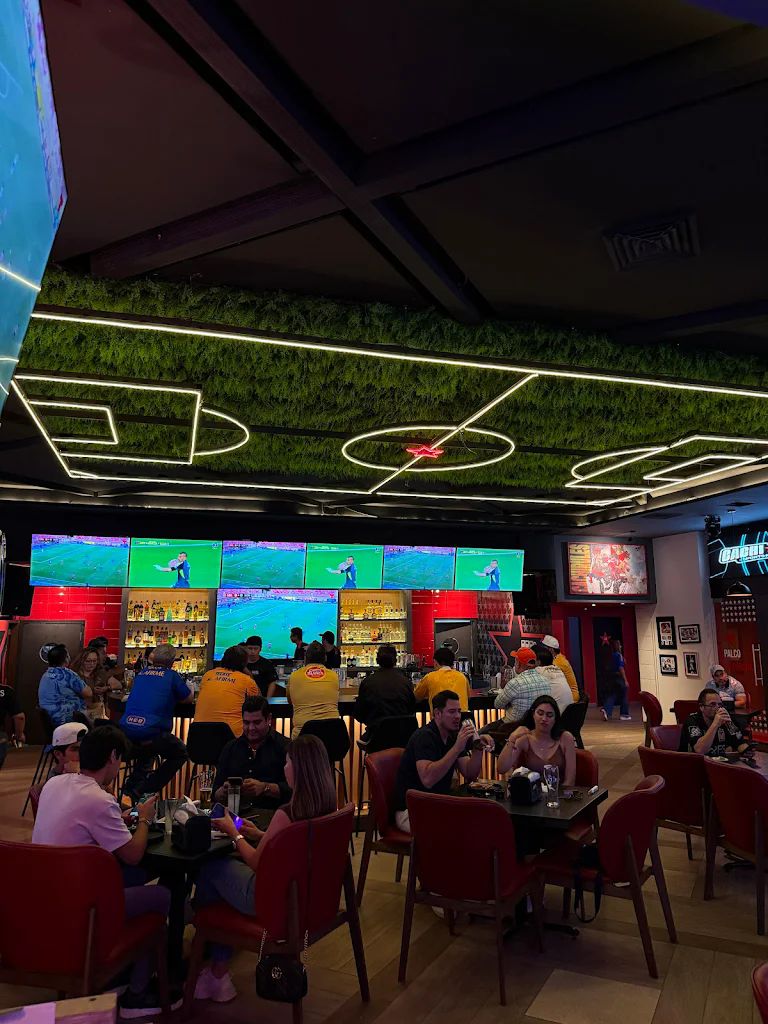 Simuladores de golf, cabinas de beisbol, cocina de cantina y bufandas europeas: la escena regia de bares deportivos lo tiene todo.